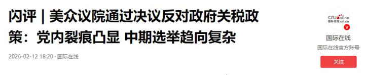 1.《美众议院投票反对特朗普对加拿大加征关税》——参考消息网(引美联社),2026年2月12日