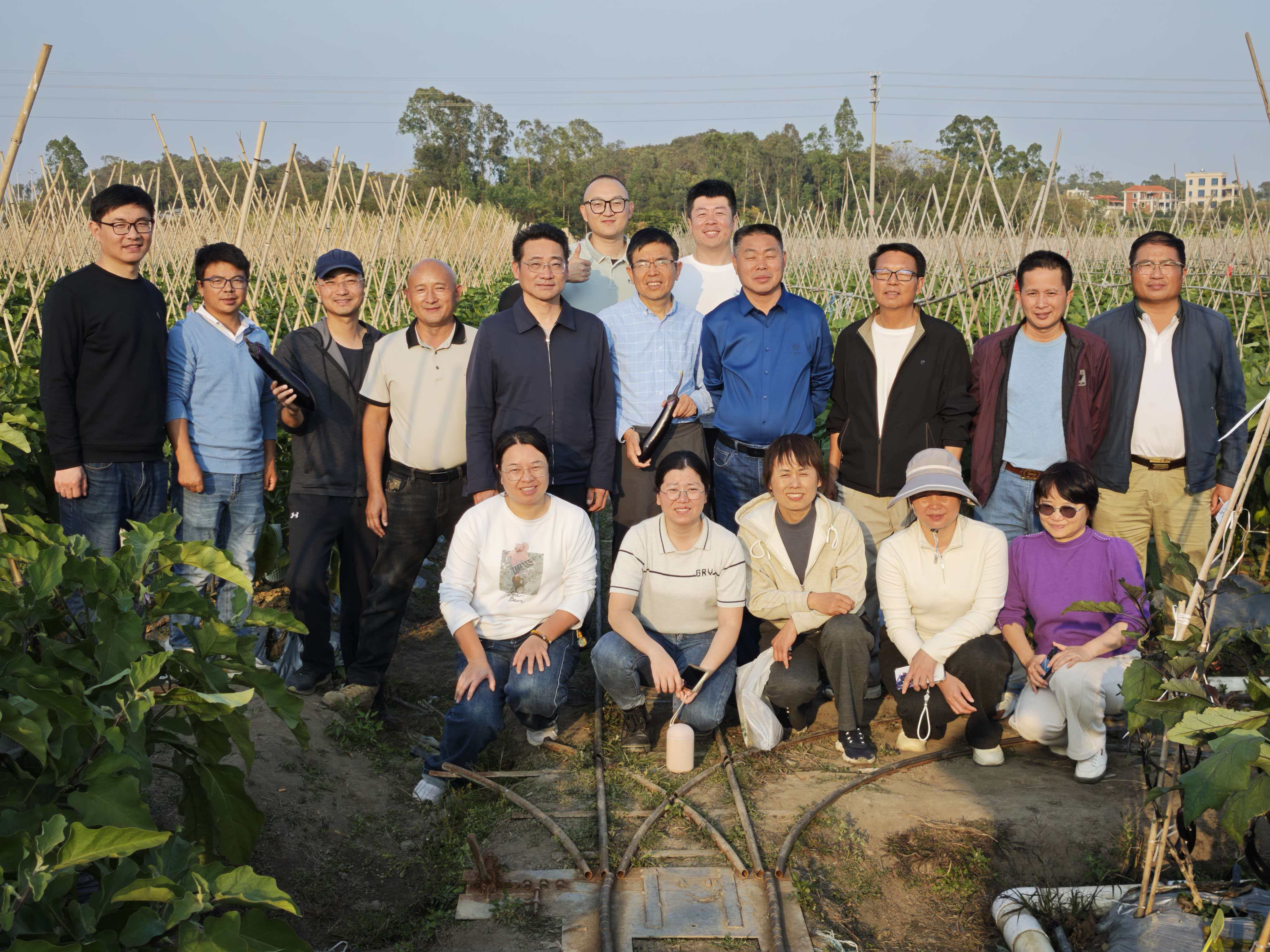 在茂名市农业科技推广中心研究员、国家大宗蔬菜产业技术体系茂名综合试验站站长邵建明及团队陪同下,专家一行先后走访了高州市石鼓镇的标准化优质高产茄子示范基地、电白区沙琅镇谭儒村“萝卜之乡”全产业链一体化经营基地,以及位于茂名市电白区岭门镇228国道旁茂名市新华农场的茂名市农业科技推广中心新品种试验示范点基地,实地察看蔬菜长势,详细了解种植模式与产业经营情况。
