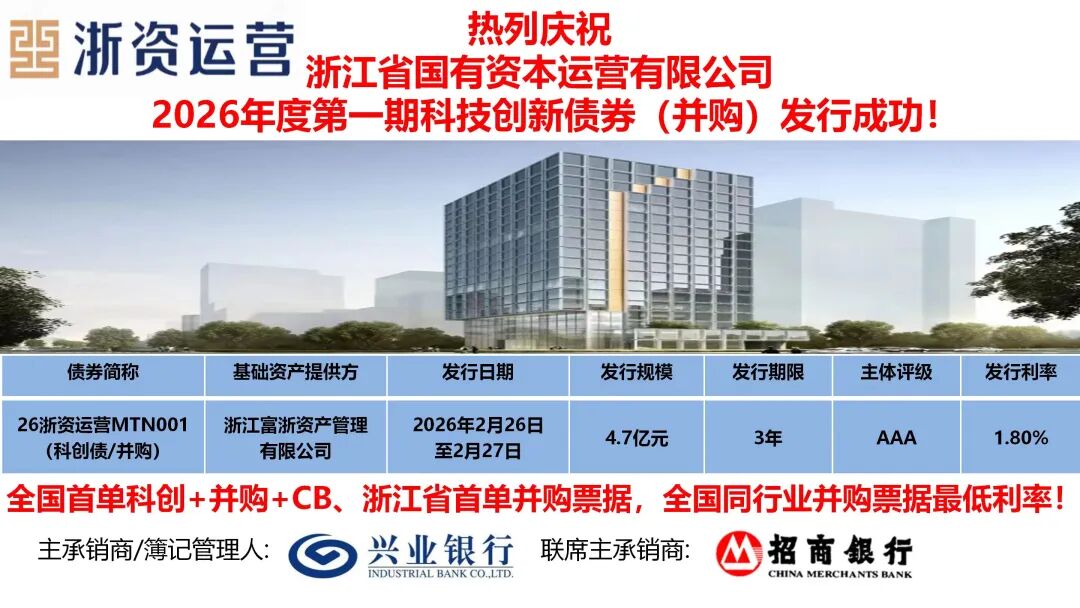 此次债券品种也是银行间市场交易商协会并购票据新规发布后浙江省内首单落地的并购票据项目,募集资金将精准用于科创企业股权投资及国企并购业务,发行价格为全国同行业并购票据最低融资利率,有效降低融资成本。